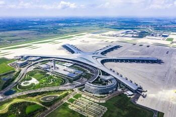 青岛胶东海外机场俯视图。